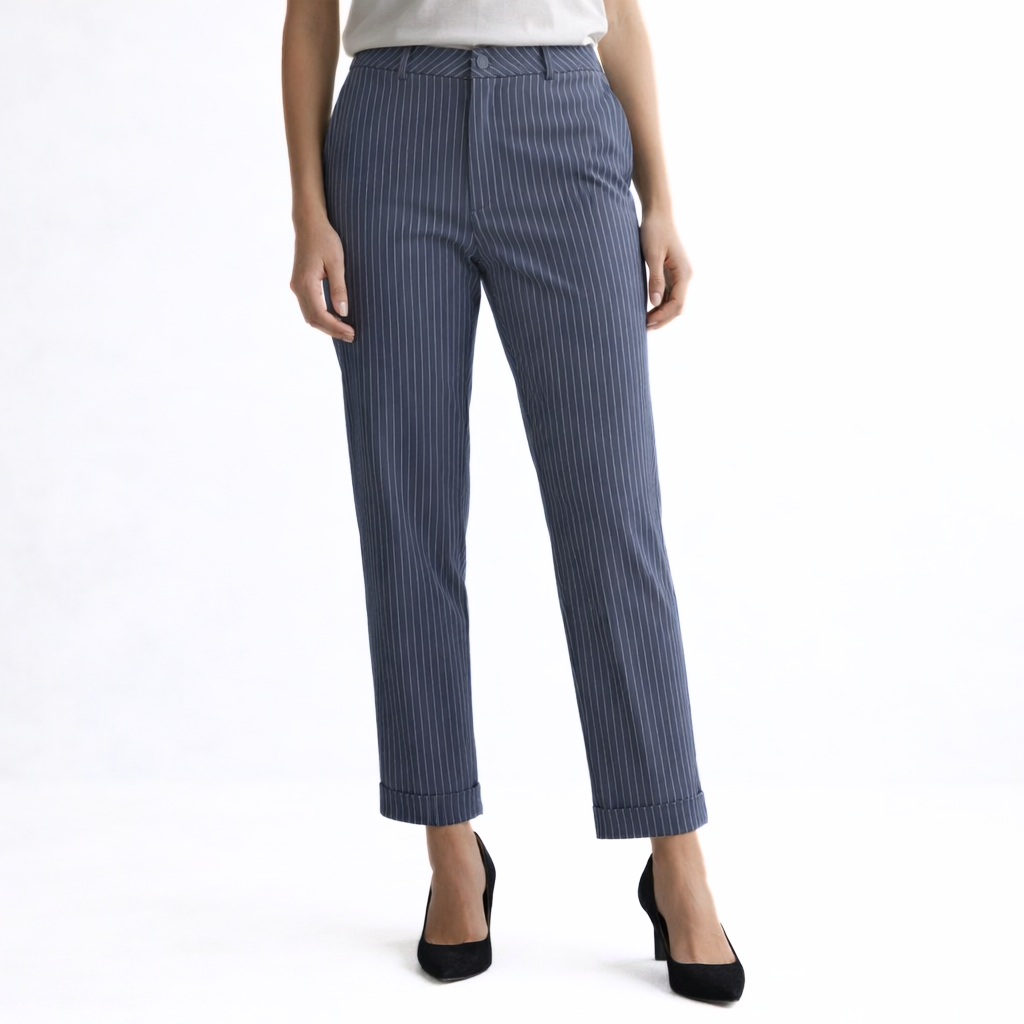 A MATHILDA Prémium Csíkos Nadrág a kifinomult női elegancia megtestesítője. Karcsúsított, mégis kényelmes szabásával gyönyörűen követi az alak vonalát, miközben magabiztos, határozott megjelenést biztosít. A finom csíkos minta optikailag nyújtja a sziluettet, így még elegánsabb összhatást teremt.