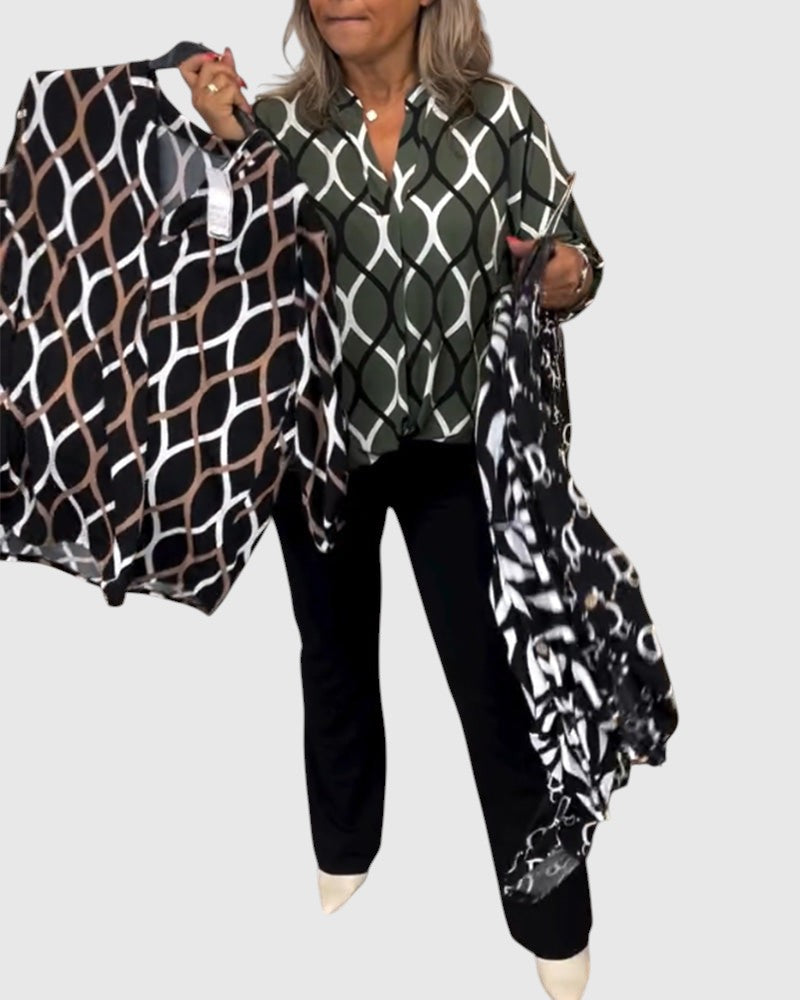 Noor – Grafikus mintás blúz